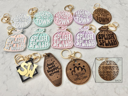"Splish Splash" - Engraved Wood Keychain